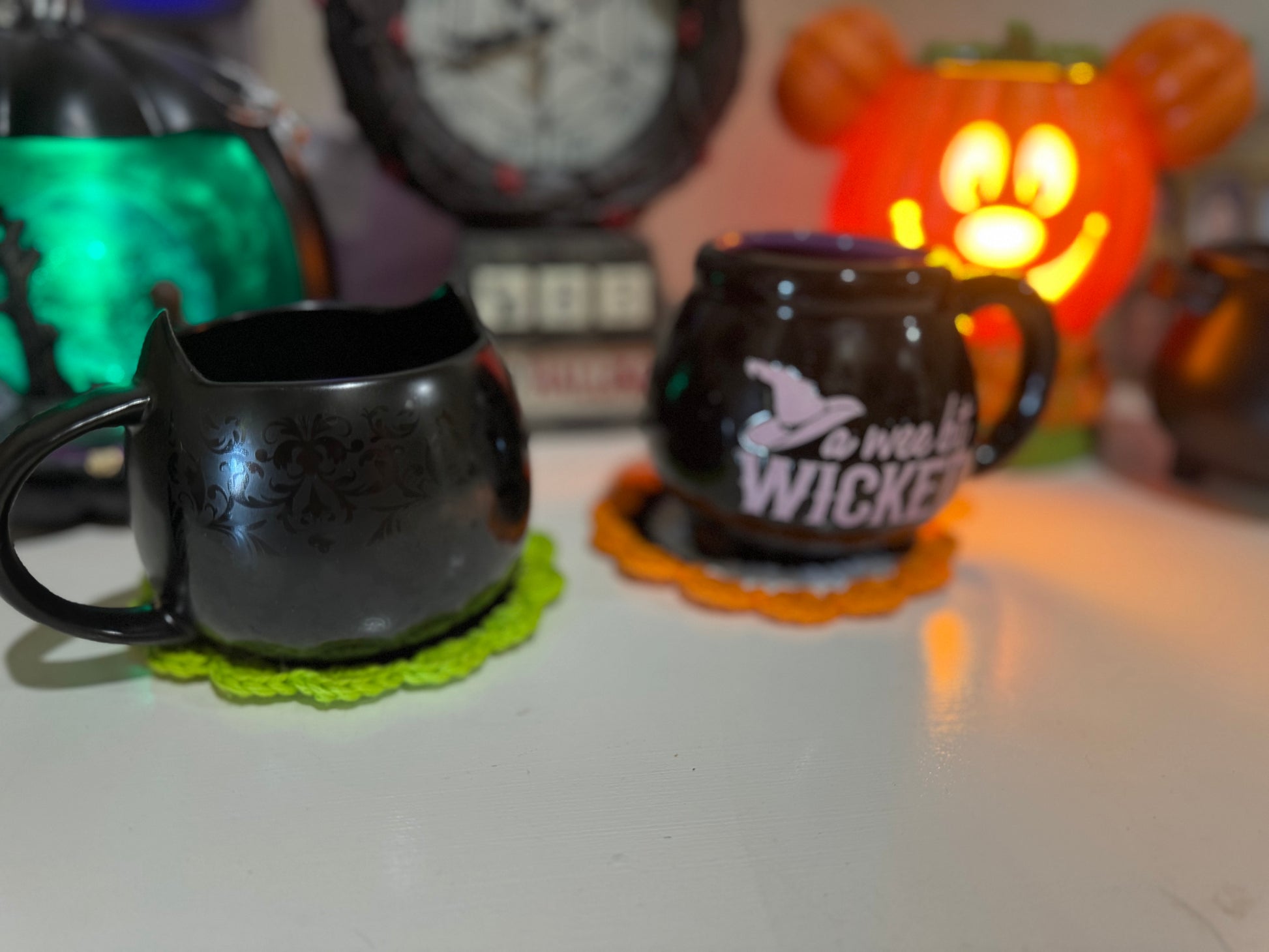 Add some spooky vibes with these cute coasters made with 100% cotton yarn. Selling in sets of 2, 4, and 6. You will receive coasters with both green and orange borders as follows: